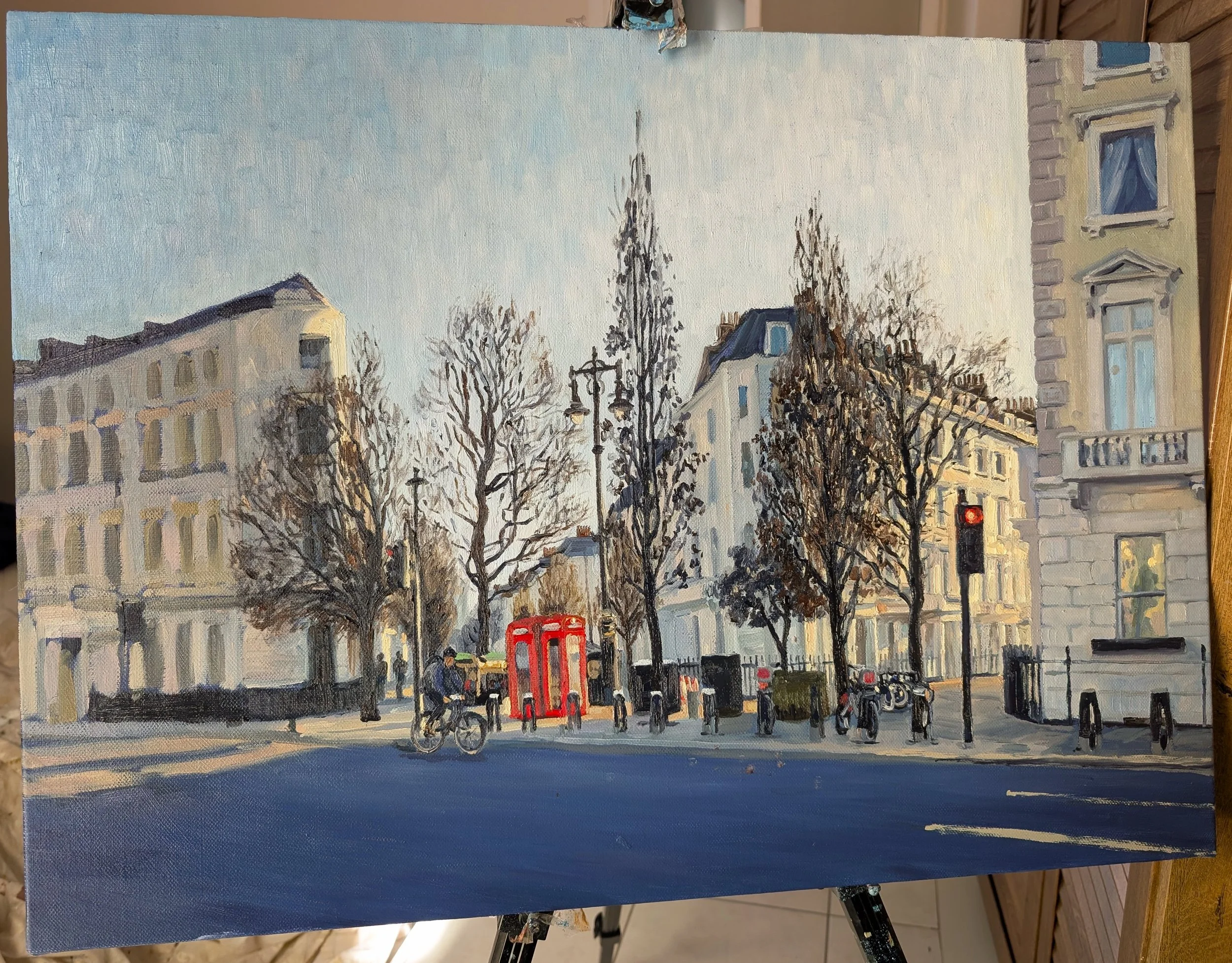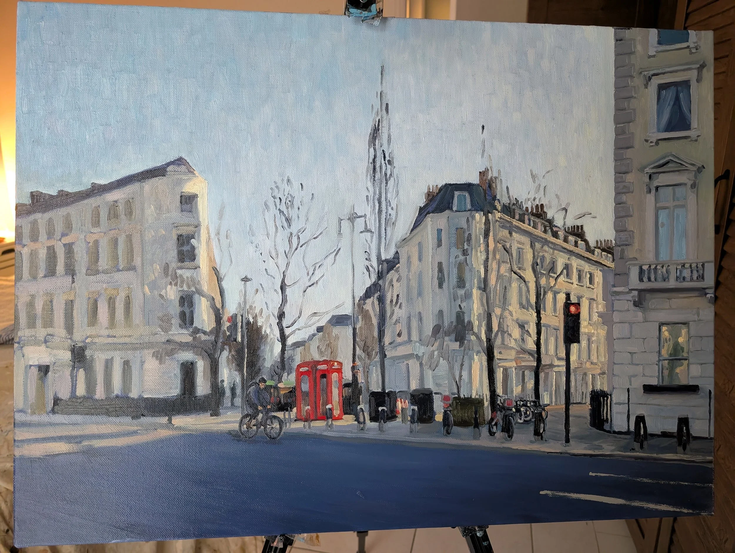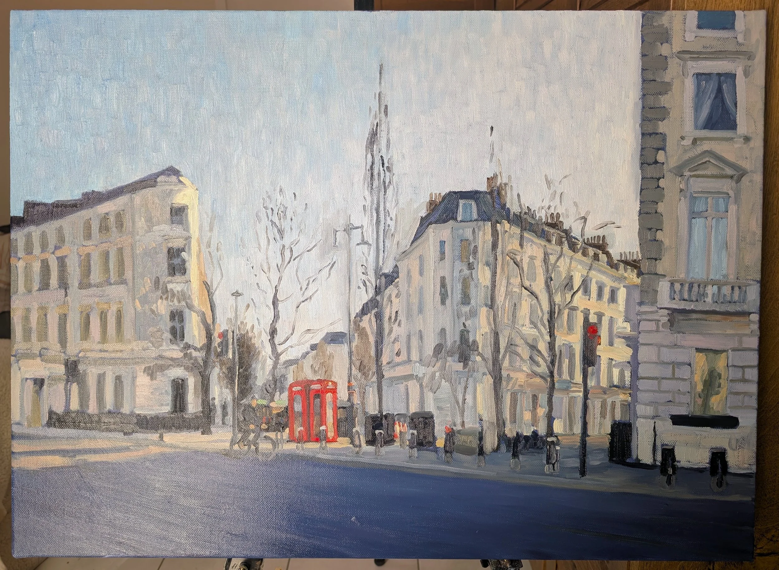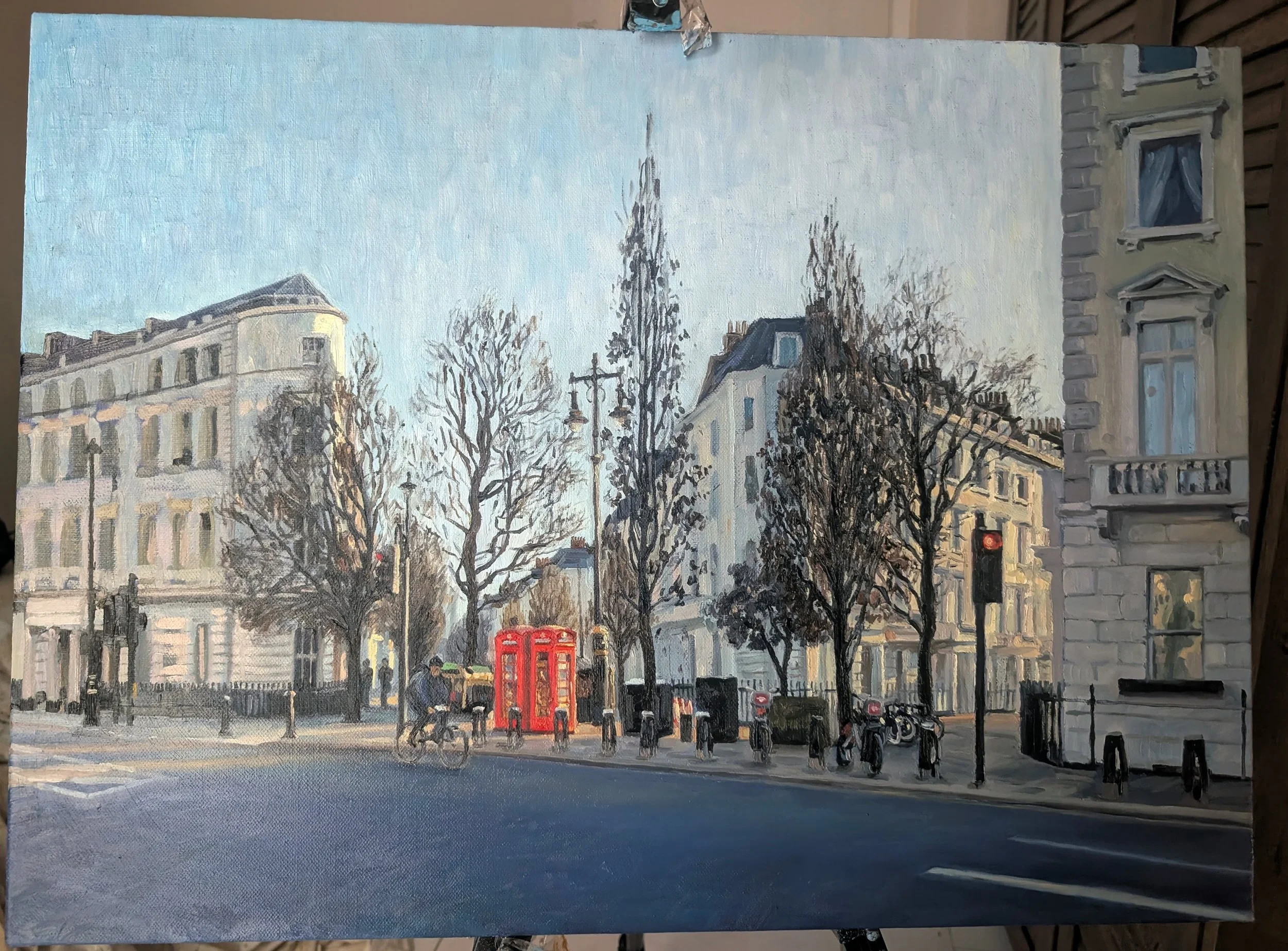 Painting process | Evening Glow on Belgrave Road, Pimlico
