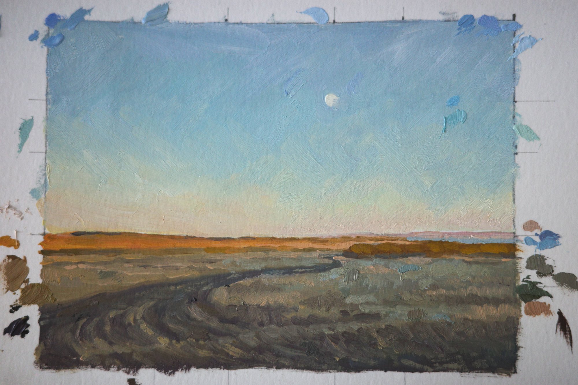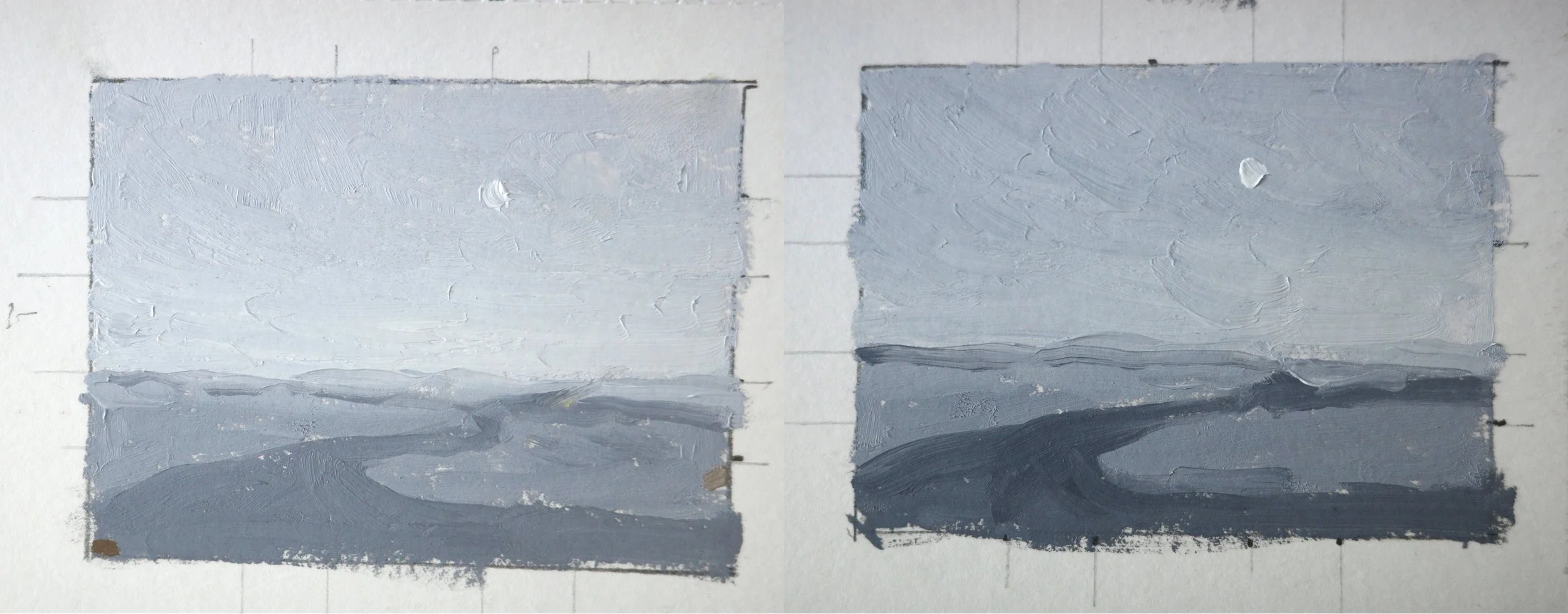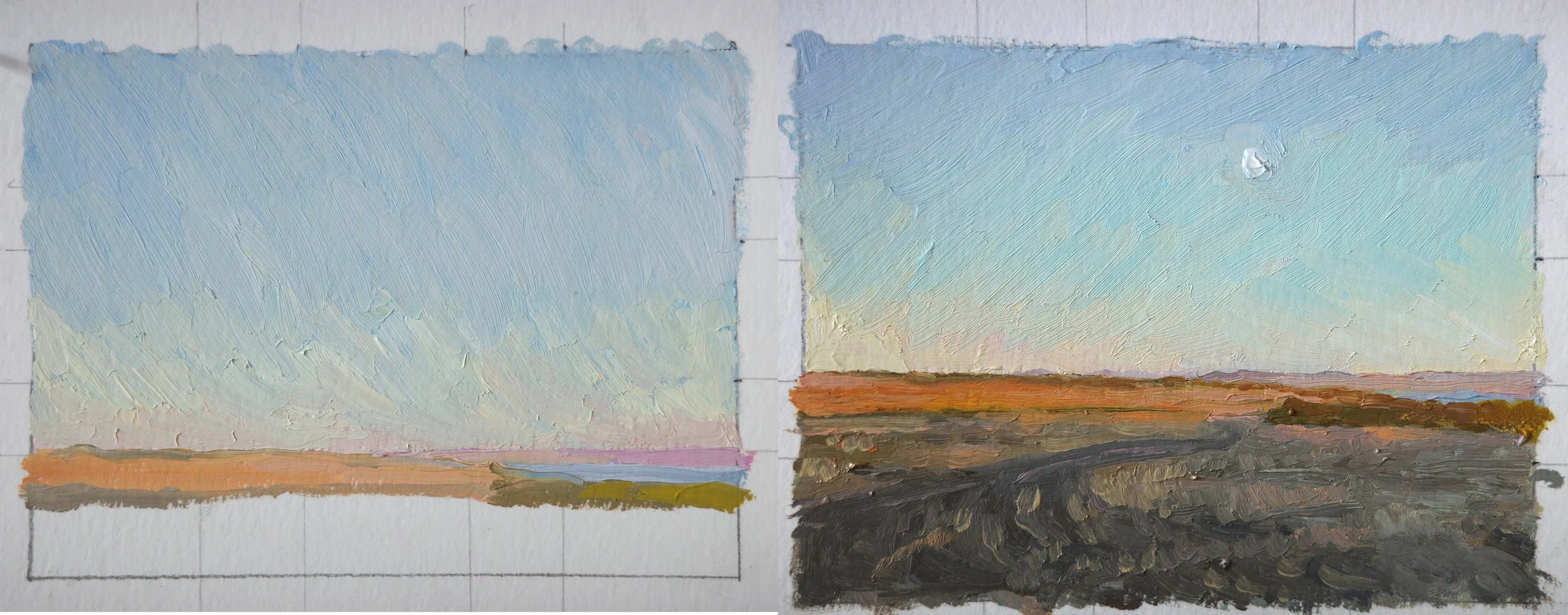 I then did these little colour studies. I abandoned the first one when I realised I’d put the horizon line too low!