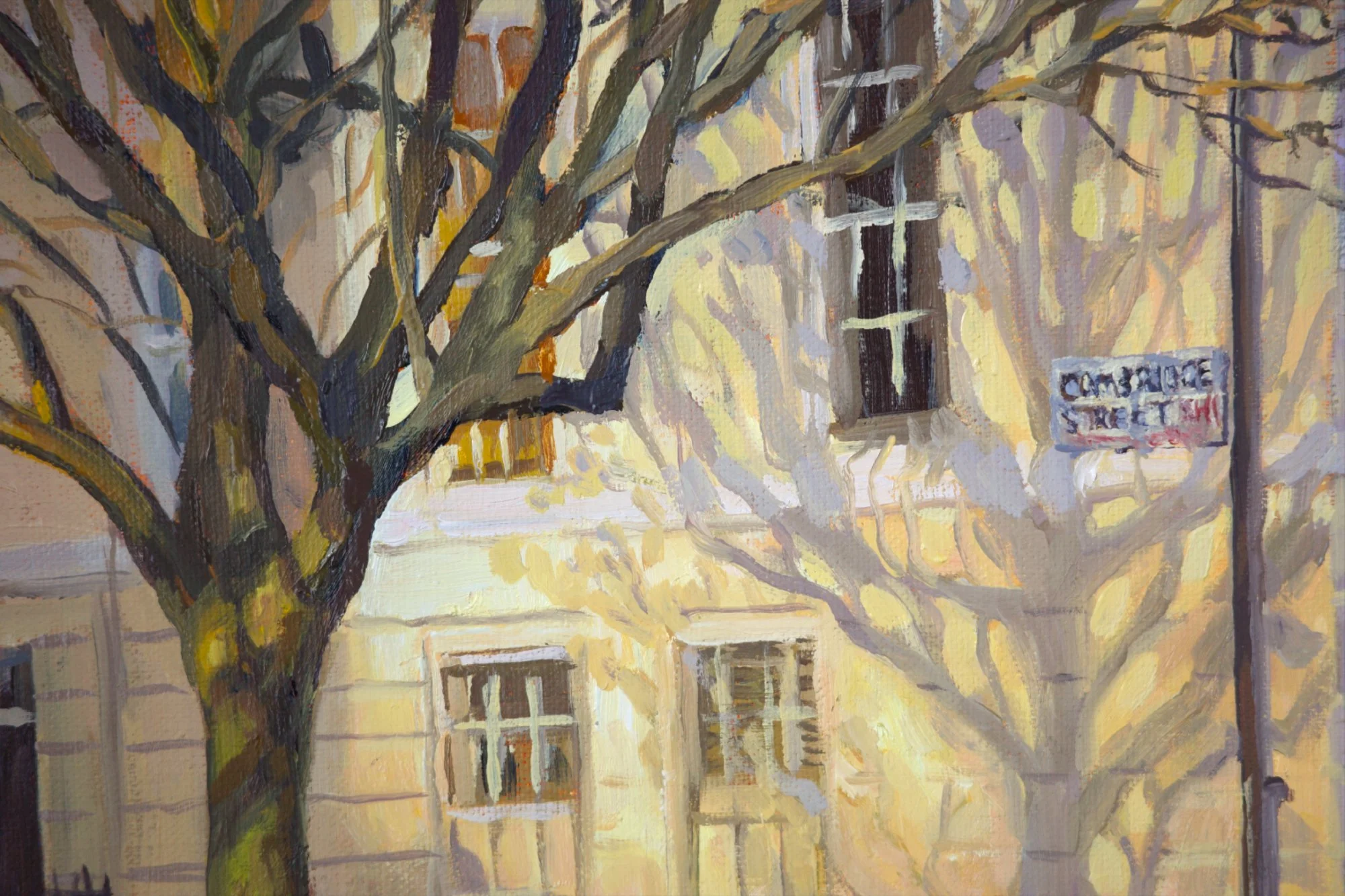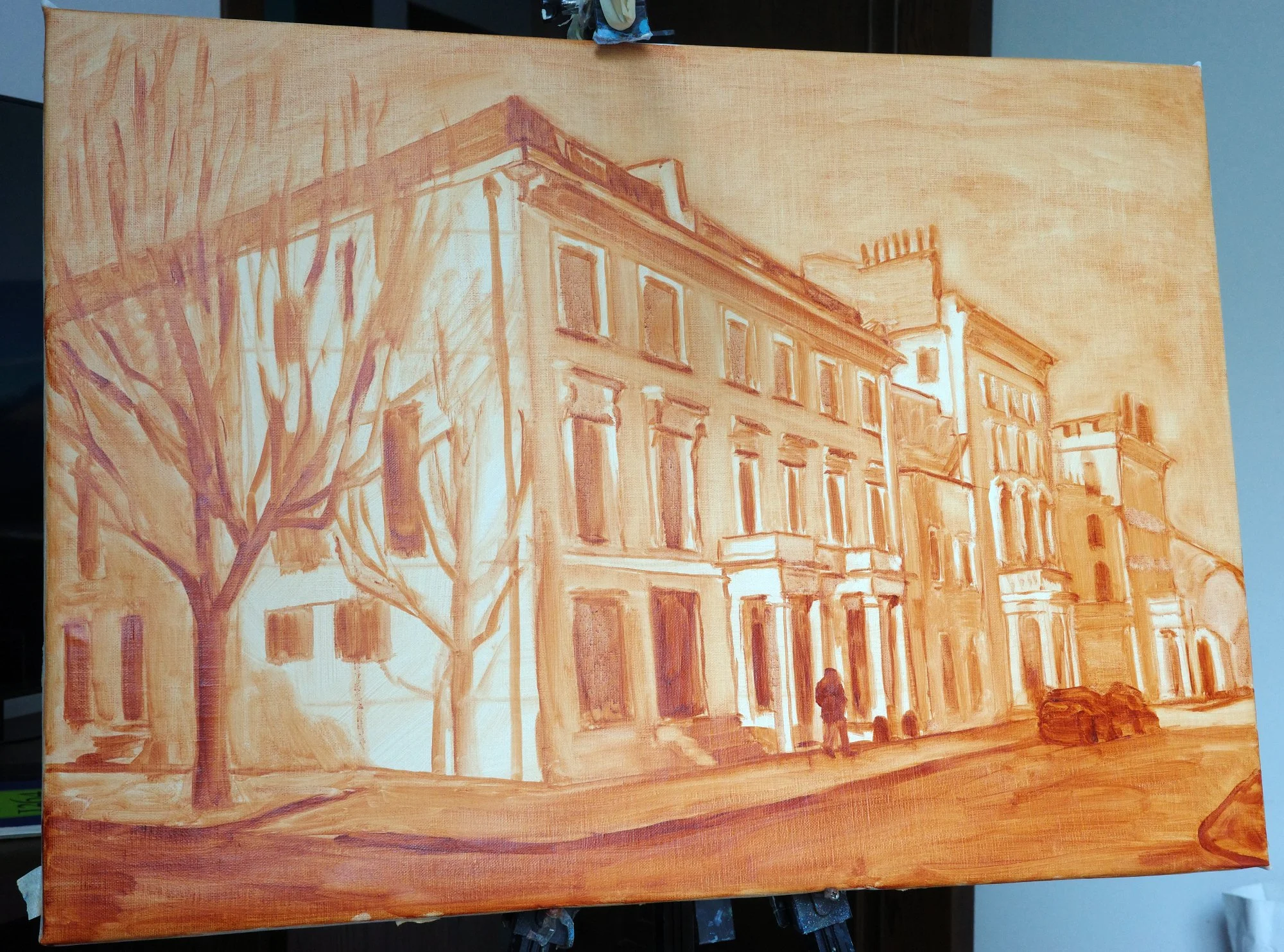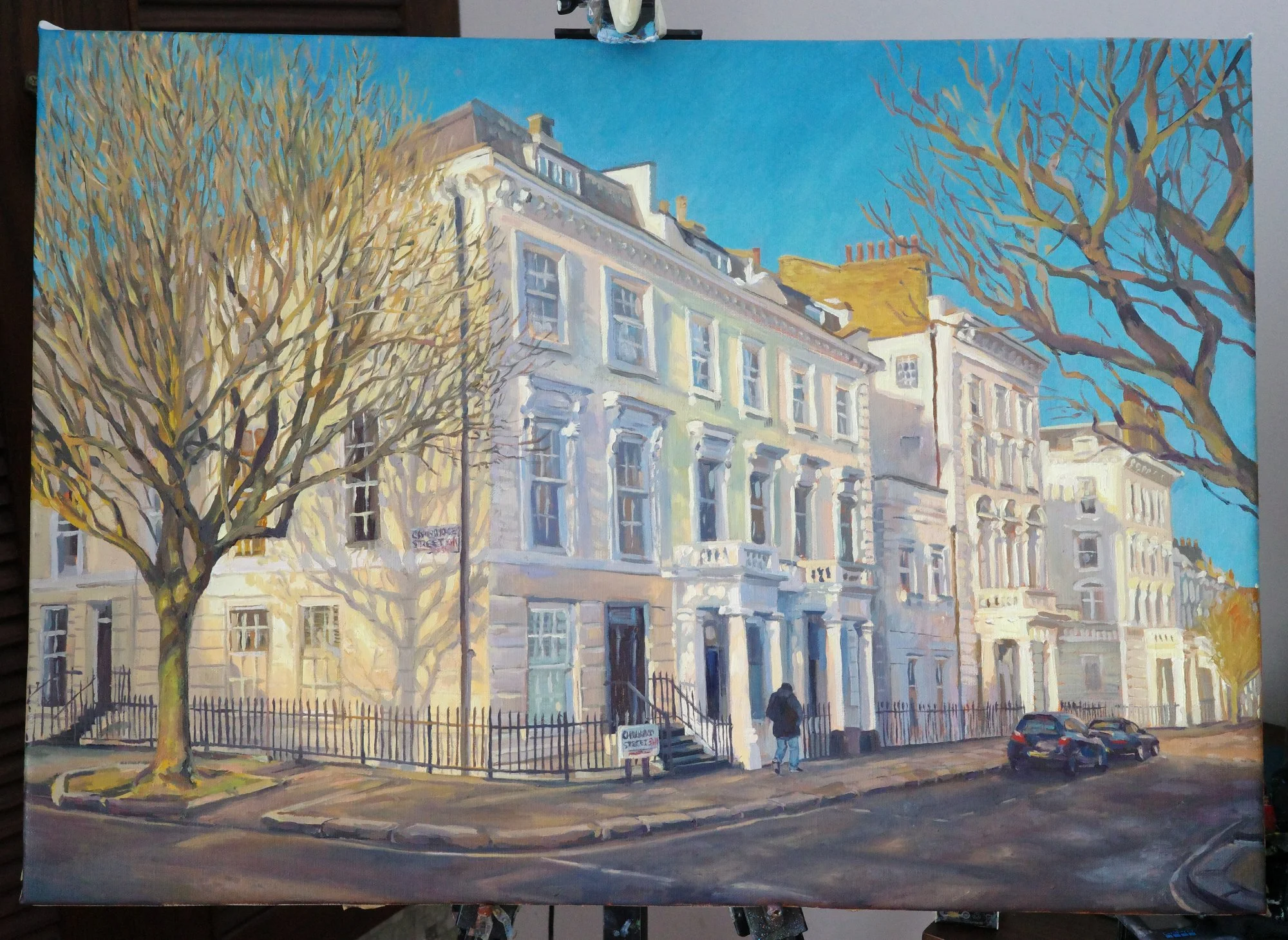 I loved mixing so many colours in this painting. I think it helped to create a glowing sense of light. The chroma is turned up, but it still feels like Pimlico on a winter’s afternoon. I’ll definitely be taking this joyful use of colour into my future work!
